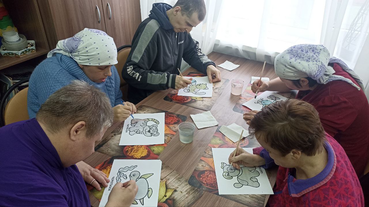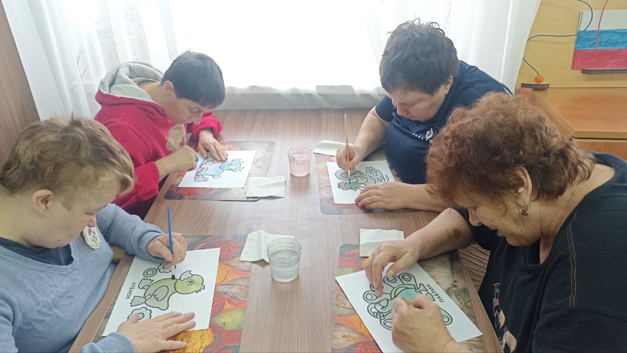 На реабилитационных занятиях с проживающими в учреждении мы стараемся применять различные приёмы для тренировки мелкой моторики. Сегодня на занятии мы работали с акварельными красками. Работать с красками сложно, но интересно.