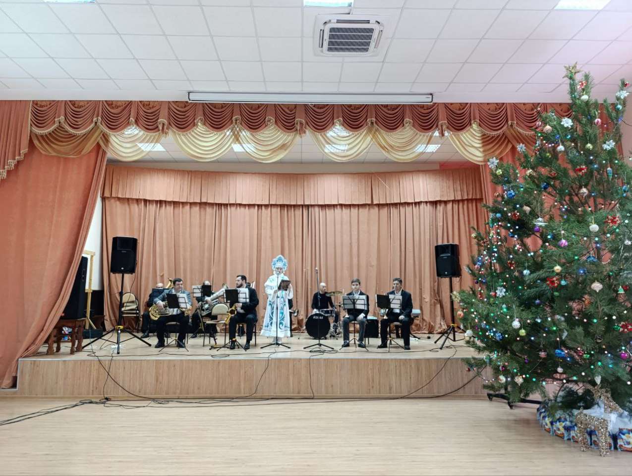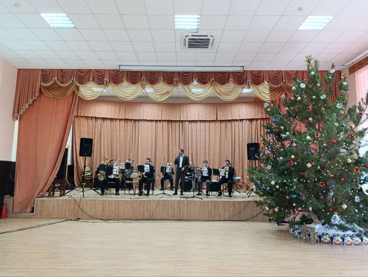 Несмотря на сложную оперативную обстановку в нашем регионе, Новый год никто не отменял. С самого детства, у каждого человека конец декабря связан с радостью предвкушения праздника, подарков и веселья, а самое главное – надежды и веры, что в Новом году, под мирным небом сбудутся мечты! В преддверии Новогодних праздников, сотрудников и жителей Грайворонского ДСО имени П.К. Бедненко, поздравил коллектив народного самодеятельного духового оркестра «Культурно – досугового центра» Грайворонского муниципального округа с прекрасной концертной программой. Концертная программа очень понравилась нашим жителям, которые с трудом смогли удержаться на своих местах, а не выбежать и начать танцевать под завораживающие звуки духовых инструментов и чудесного голоса Сергея Новакова.