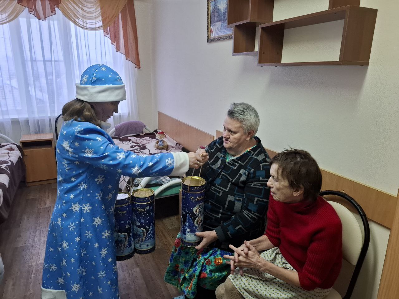 Традиции получать подарки в Новогодние и Рождественские праздники существует уже много веков. Радость от получения подарков принадлежит не только детям, но и взрослым. В Грайворонском ДСО имени П.К. Бедненко, традиционно, Новогодние и Рождественские подарки вручают главные герои этих праздников Дедушка мороз и Снегурочка. Без внимания не остался ни один житель нашего учреждения.