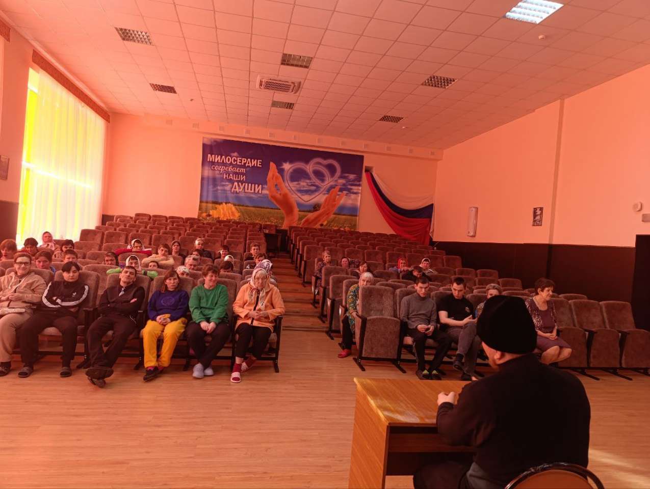 Сегодня, Час православия для жителей Грайворонского ДСО имени П.К. Бедненко, провёл священник, который окормляет наше учреждение иерей Виктор Белазерских. Жители нашего учреждения очень любят встречи с нашим батюшкой, всегда с нетерпением её ждут. Сегодня отец Виктор рассказывал нам о библейском сюжете, повествующем о Рождестве Иисуса Христа, а также празднике Крещение, а также ответил на давно интересующие нас вопросы.