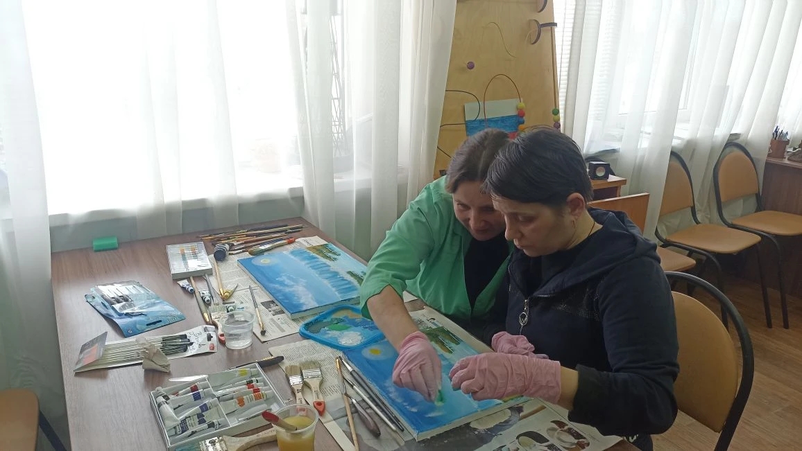 Писать картину, довольно таки интересное и увлекательное занятие. Нет ничего более увлекательного, чем наблюдение затем, как на чистом белом листе, появляются пейзажи с прекрасными бескрайними полями, цветами иле же рыцарские замки, старинные деревеньки, либо же прекрасные лица и ты имеешь к этому прямое отношение. В Грайворонском ДСО имени П.К. Бедненко, на занятиях по ИЗО, наша проживающая Марина Головкина, осваивает работу с акриловыми красками. Под чутким руководством специалиста по социальной работе С.Н. Ильюшиной у Марины получился прекрасный пейзаж.